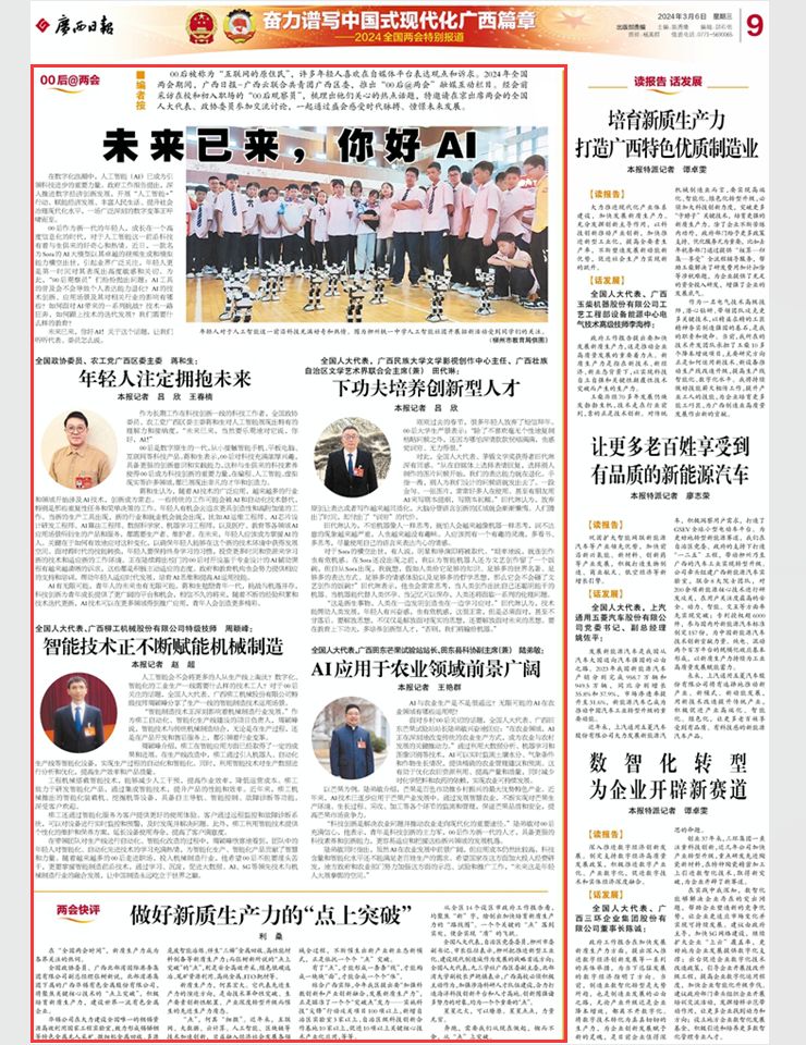 作为长期工作在科技创新一线的科技工作者,全国政协委员、农工党广西区委主委蒋和生对人工智能展现出特有的理解力和接纳度,“未来已来,当然要乐观地对它说,你好,AI!”