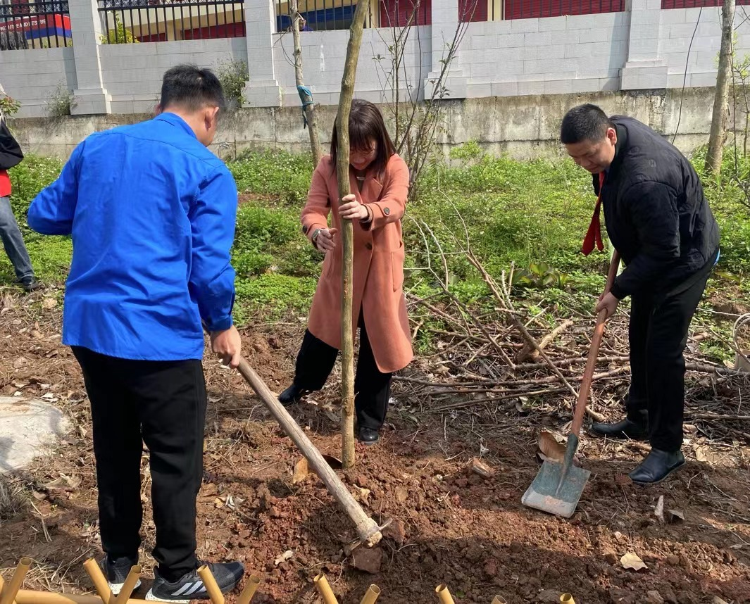 当天,中越边境青年首先开展“‘植’与你一起,播种梦想”主题植树活动。现场,大家三人为一组,一人扶正树苗,两人挥锹培土,忙碌而有序地种植苗木。通过共植青年友谊树,让两国青年情谊生根发芽、开花结果。