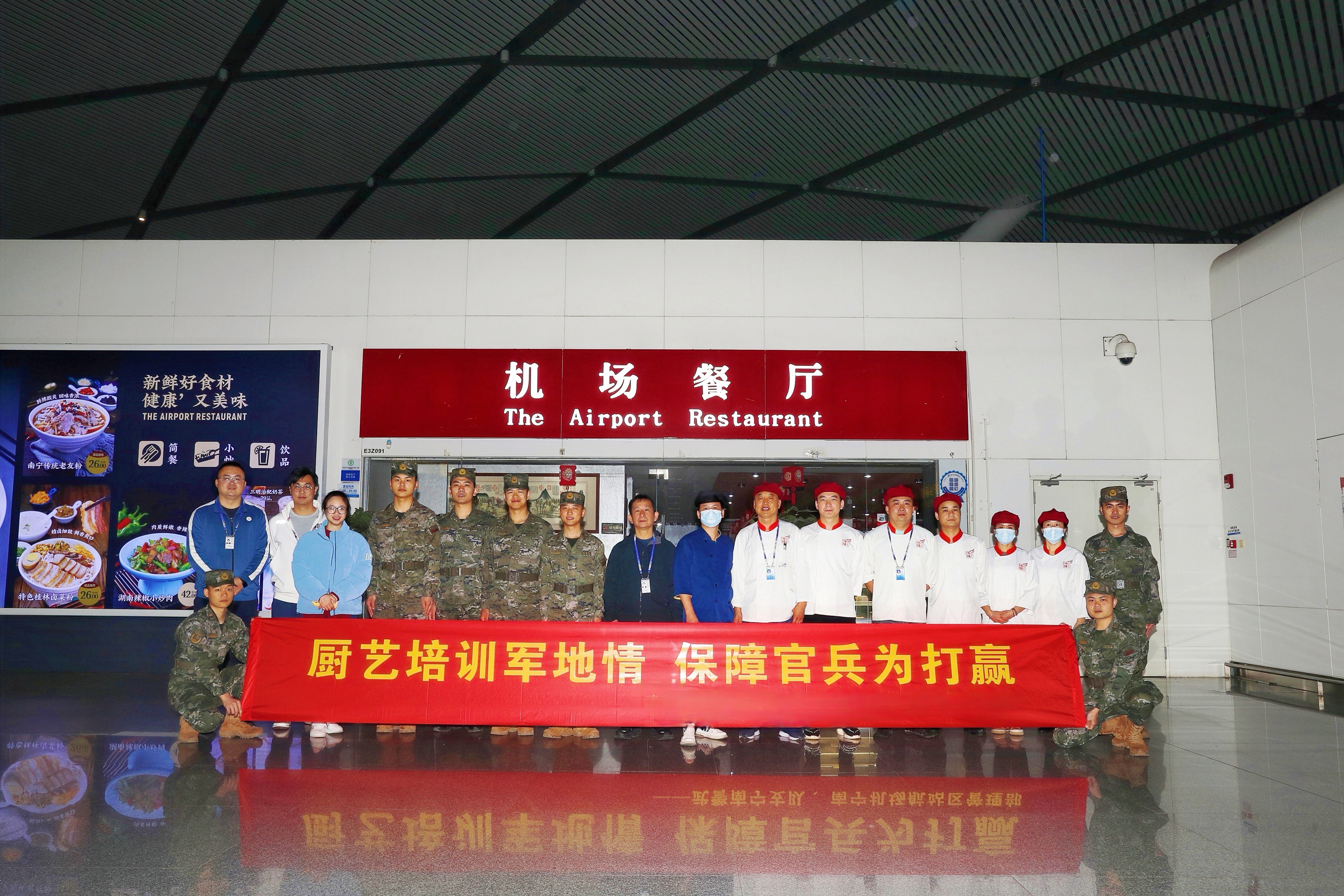近日,南宁机场与驻地武警某支队在机场餐厅开展“厨艺培训军地情,保障官兵为打赢”主题厨艺交流会。