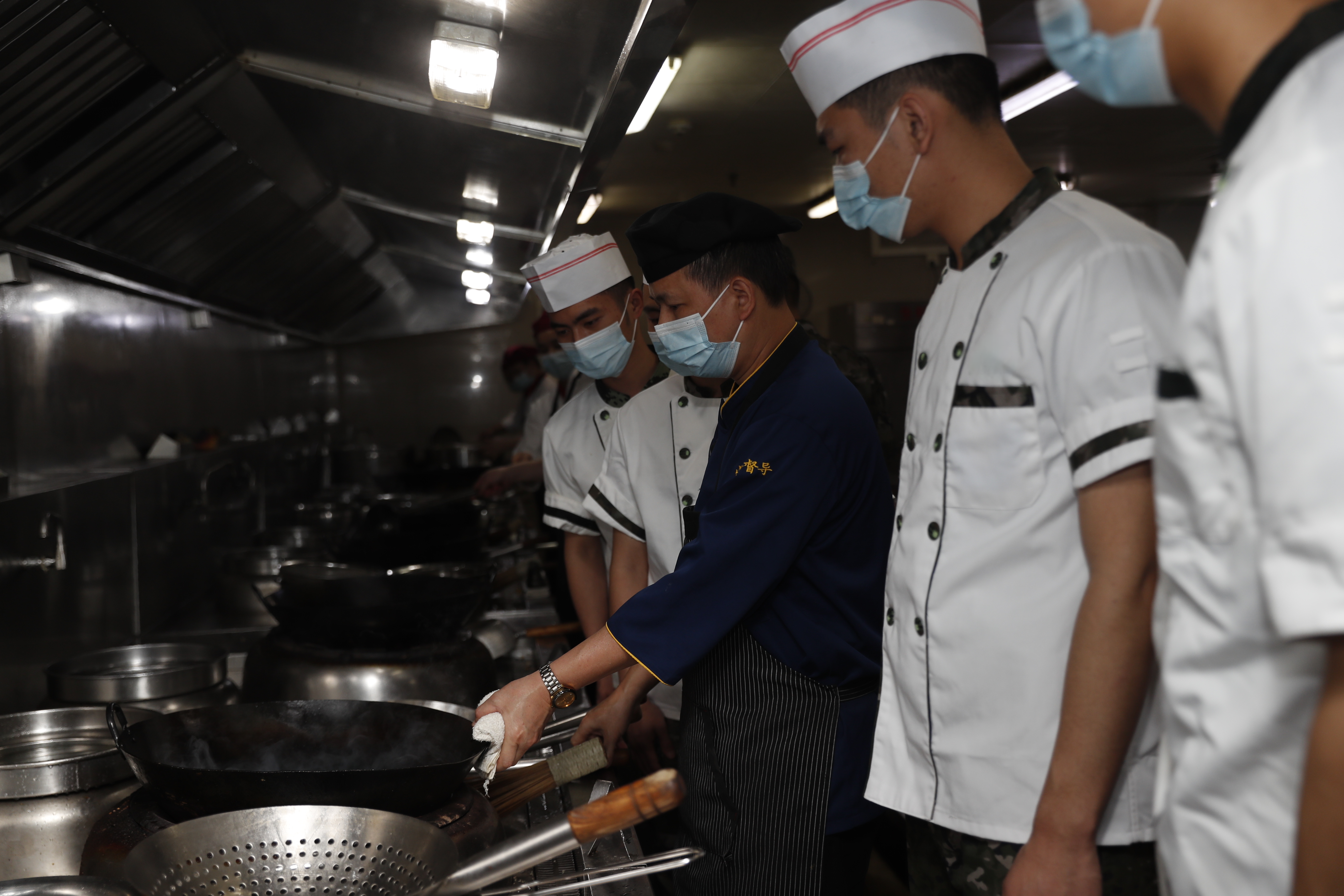 本次活动双方以“基本烹饪技巧交流、丰富烹饪菜品”为出发点,通过理论讲解、实际操作、品尝体验等方式展开。机场餐厅行政总厨介绍了饮食种类、半成品制作流程、面食加工调料调剂、粮油节约运用定量等内容,重点对主食、副食、油料、汤剂、蔬菜搭配进行讲解和教学。武警支队的炊事员进行了烹饪实践,并分享了烹饪心得。