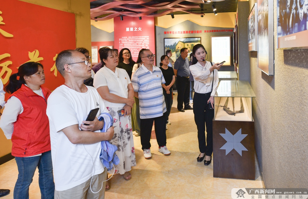 作家们在金秀瑶族自治县长垌乡龙华红色革命纪念馆采风。曾庆春 摄