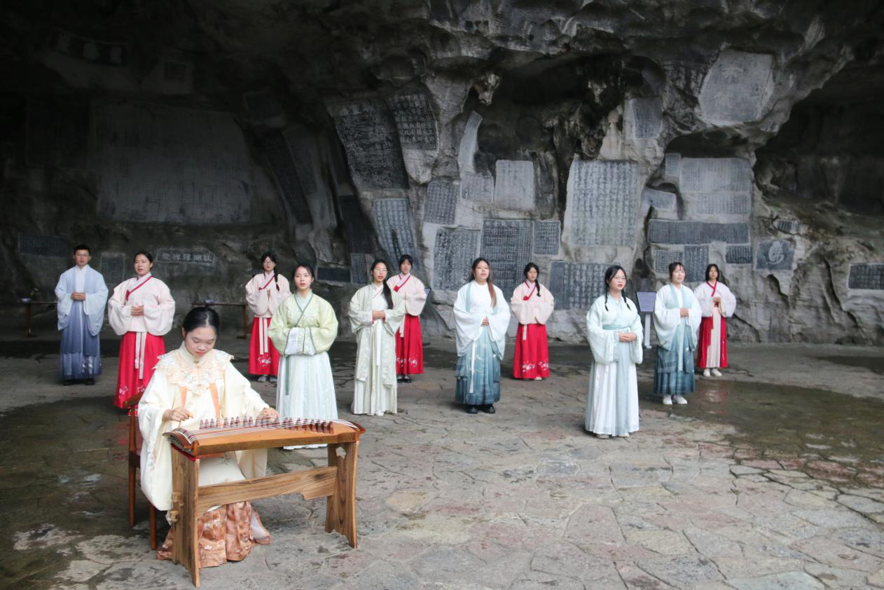碑帖临摹、汉服吟诵、古筝演奏、研讨宣讲……在第48个国际博物馆日当天,广西师范大学文学院/新闻与传播学院青年学子来到桂林市七星区桂海碑林博物馆,把主题团日活动开在了史称“摩崖殆遍,壁无完石”的龙隐岩内,触摸石刻文化发展的脉搏,点燃心中文化自信之火。