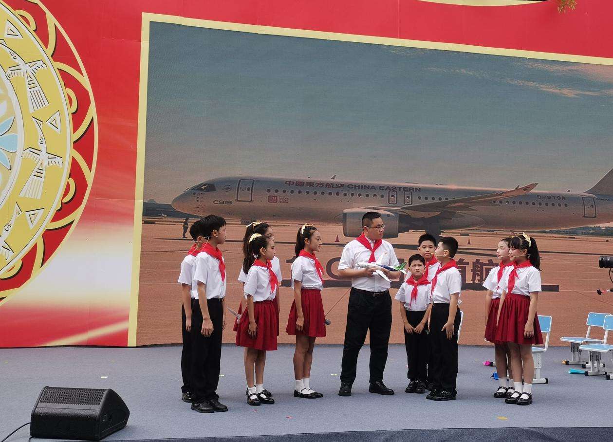紧接着,三地少年儿童共同聆听一堂题为《“飞”跃起点,“翼”向蓝天——共同画好强国建设、民族复兴的最大同心圆》的主题队课,少先队校外辅导员、C919国产大飞机的参与研制者、广西科学院高端装备制造研究所的正高级工程师蓝元沛博士通过讲述自身成长经历,鼓励队员们从小树立为国成才、报效祖国的远大理想。