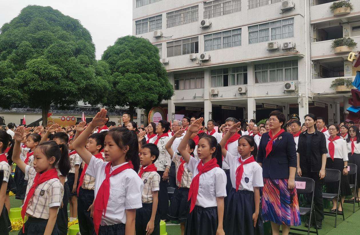 活动现场,南宁市民主路小学的少先队员们以热情洋溢的壮乡《迎客歌》迎接到场的领导嘉宾,并向他们敬献红领巾。三地少先队员“云端”相见,合唱国歌,齐唱队歌。出席活动的领导嘉宾为14个新建中队授中队旗,为新聘任的中队辅导员颁发聘书。同时聘请了一批关心与支持少先队工作的“五老”担任广西少先队校外辅导员,进一步加强少先队社会化工作力量。