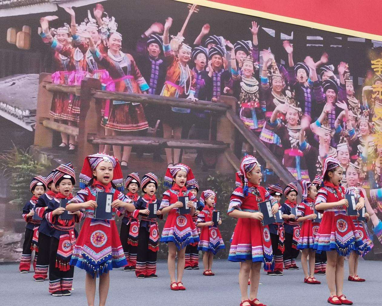 在主题队日活动中,少先队员们通过朗诵、童谣、歌舞表演、情景剧等丰富多彩的展示形式共交流,为绘就民族复兴、民族团结、强国建设的最大同心圆增添色彩,表达了三地少先队员们心中有党,心怀梦想、勇于担当、苦学本领的少年壮志。