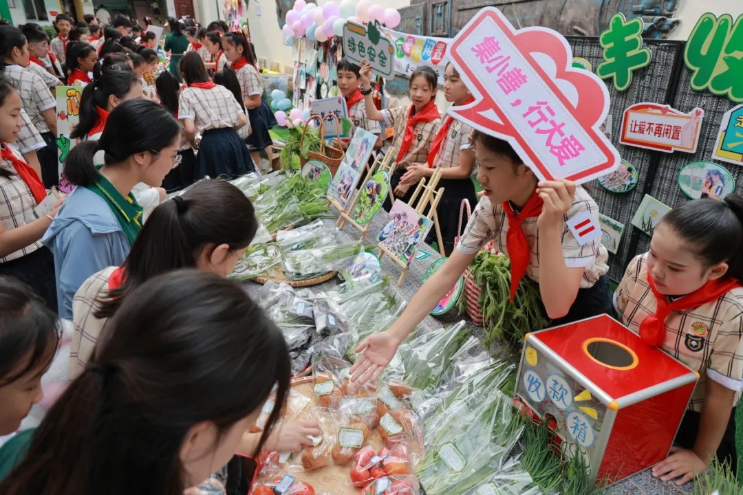 在“红领巾壮苗行动”主题公益活动现场,少先队员们分别在非遗传承、益智传递、丰收市集和巧手乐园四个街区进行爱心义卖,将闲置文具、物品、手工作品、农作物等销售所得捐赠至“广西红领巾基金”,开展公益实践打卡,齐争“红领巾奖章”特色章——“壮苗章”。通过实践锻炼,培养广大少先队员团结友爱、奉献互助的优秀品质。