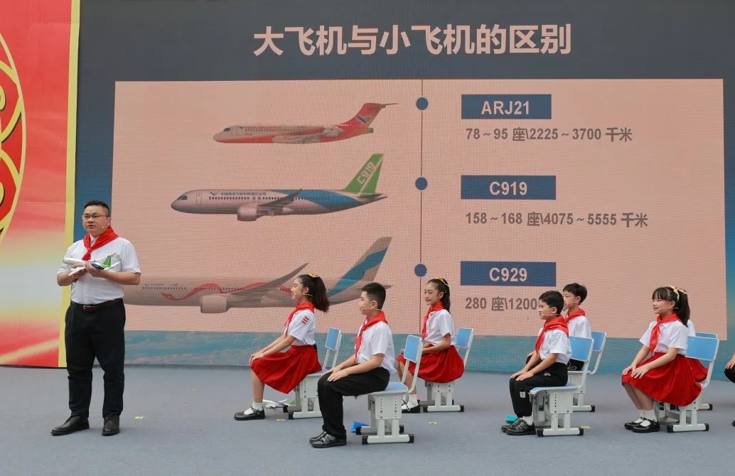 三地少年儿童共同聆听一堂题为《“飞”跃起点,“翼”向蓝天——共同画好强国建设、民族复兴的最大同心圆》的主题队课,少先队校外辅导员、C919国产大飞机的参与研制者、广西科学院高端装备制造研究所的正高级工程师蓝元沛博士通过讲述自身成长经历,鼓励队员们从小树立为国成才、报效祖国的远大理想。