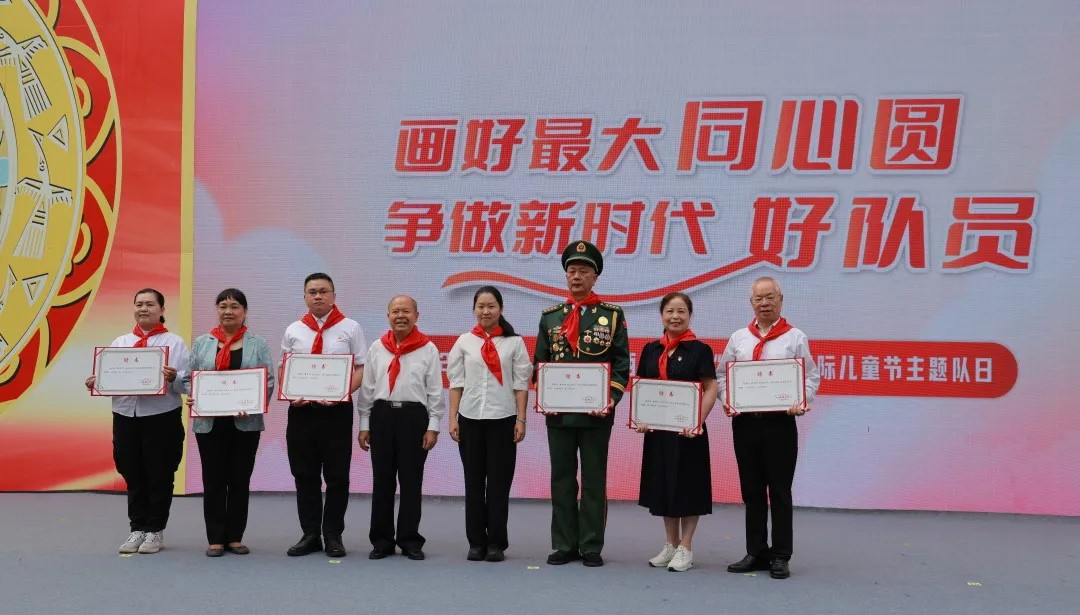 出席活动的领导嘉宾为14个新建中队授中队旗,为新聘任的中队辅导员颁发聘书。同时聘请了一批关心与支持少先队工作的“五老”和科技工作者担任广西少先队校外辅导员,进一步加强少先队社会化工作力量。