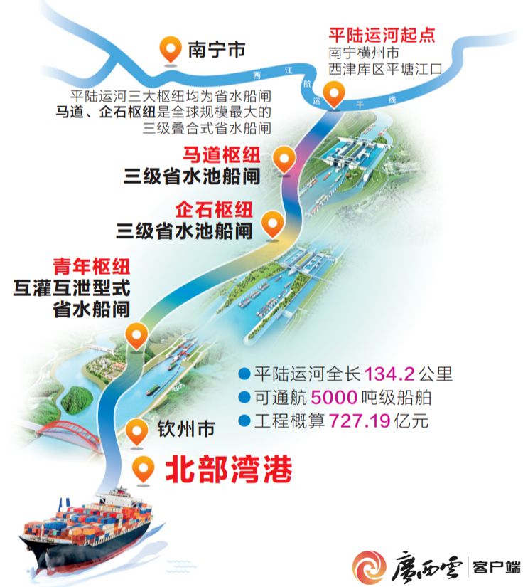 不单是运河两端的南宁、钦州,全区各地纷纷逐梦平陆运河。