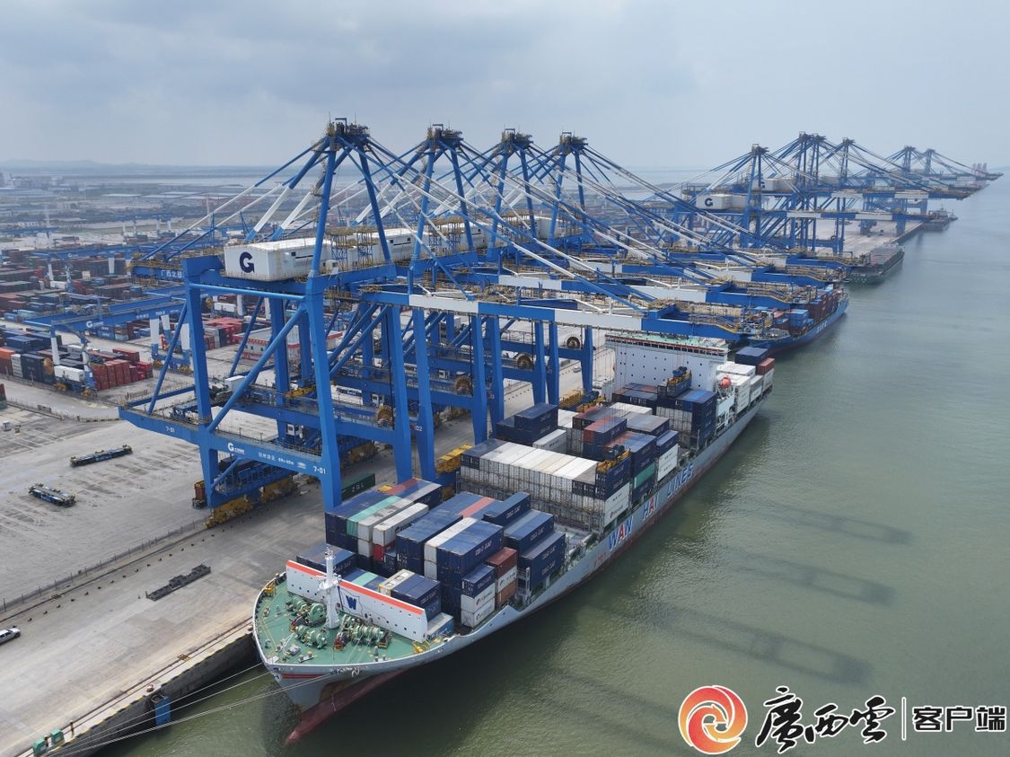 钦州自动化集装箱码头内,万吨巨轮往来不绝。作为国际陆海联运枢纽,北部湾港依托其出海的便捷性以及低成本,吸引了越来越多的外贸企业。