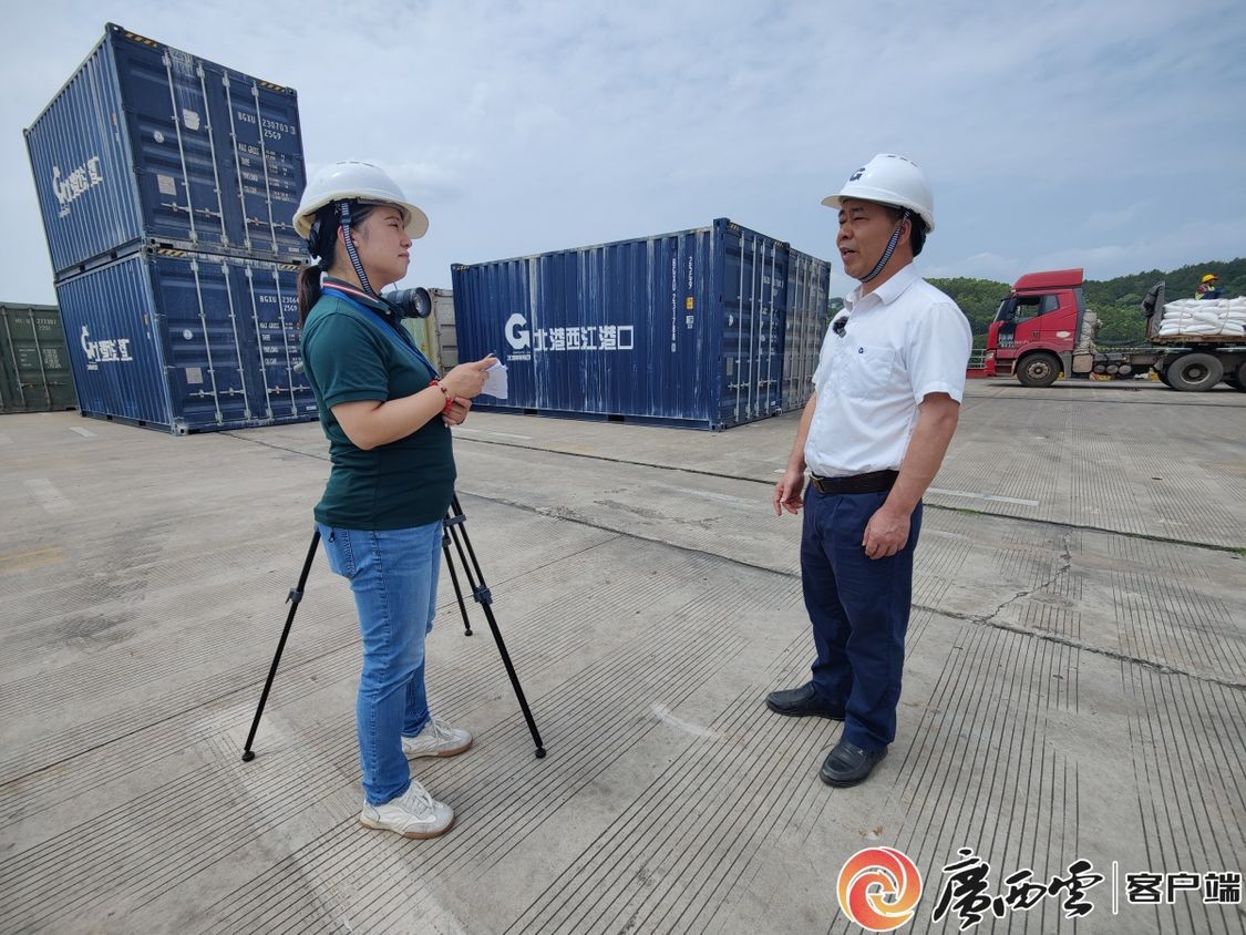 广西日报社组成平陆运河报道战队,5月中旬深入中谷钦州集装箱多式联运物流基地开展采访调研。记者 林亮 王希 摄