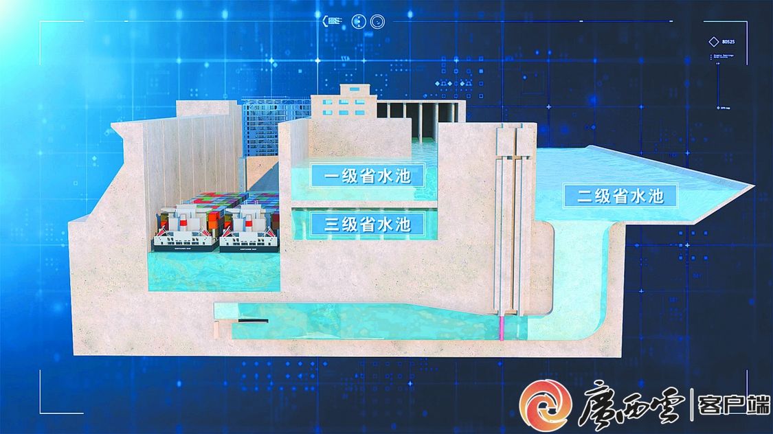 平陆运河省水船闸三级省水池示意图。(平陆运河集团供图)