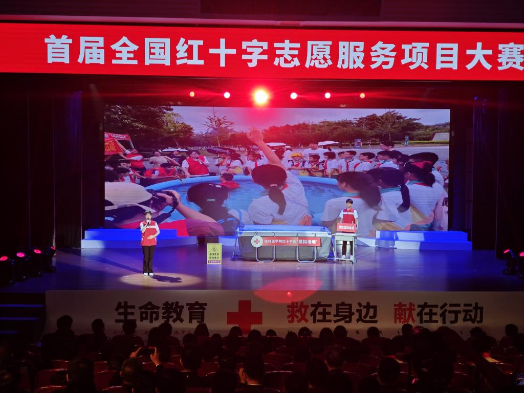 5月20日—22日,由中国红十字会总会、中央社会工作部联合主办的首届全国红十字志愿服务项目大赛在沈阳举行。第十三届全国人大常委会副委员长、中国红十字会会长陈竺出席大赛颁奖仪式并为金奖项目团队颁奖,中国红十字会党组书记、常务副会长王可,中央社会工作部副部长蔡丽新,辽宁省副省长、省红十字会会长靳国卫出席大赛颁奖仪式并致辞。桂林医学院《“模拟池塘”——场景式青少年防溺水生命教育项目》作为广西唯一入围决赛的项目在比赛中脱颖而出,斩获金奖,同时受邀参加颁奖典礼现场展示。