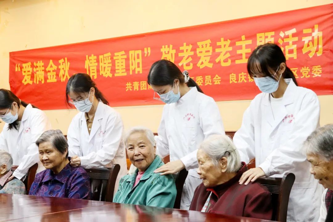 ▲蟠龙社区党委联合共青团良庆区委在好和家园小区开展“党建引领 情暖重阳”关爱高龄老人志愿服务活动。