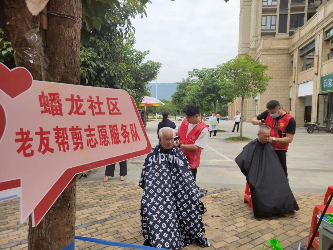 ▲蟠龙社区老友帮剪志愿服务队开展爱心义剪活动。