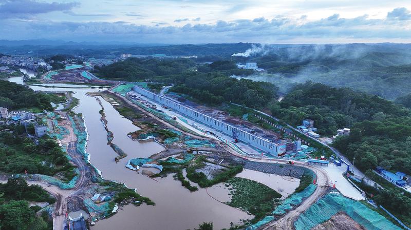 6月29日,平陆运河项目首座水上服务区——新福水上综合服务区重力式码头顺利封顶。