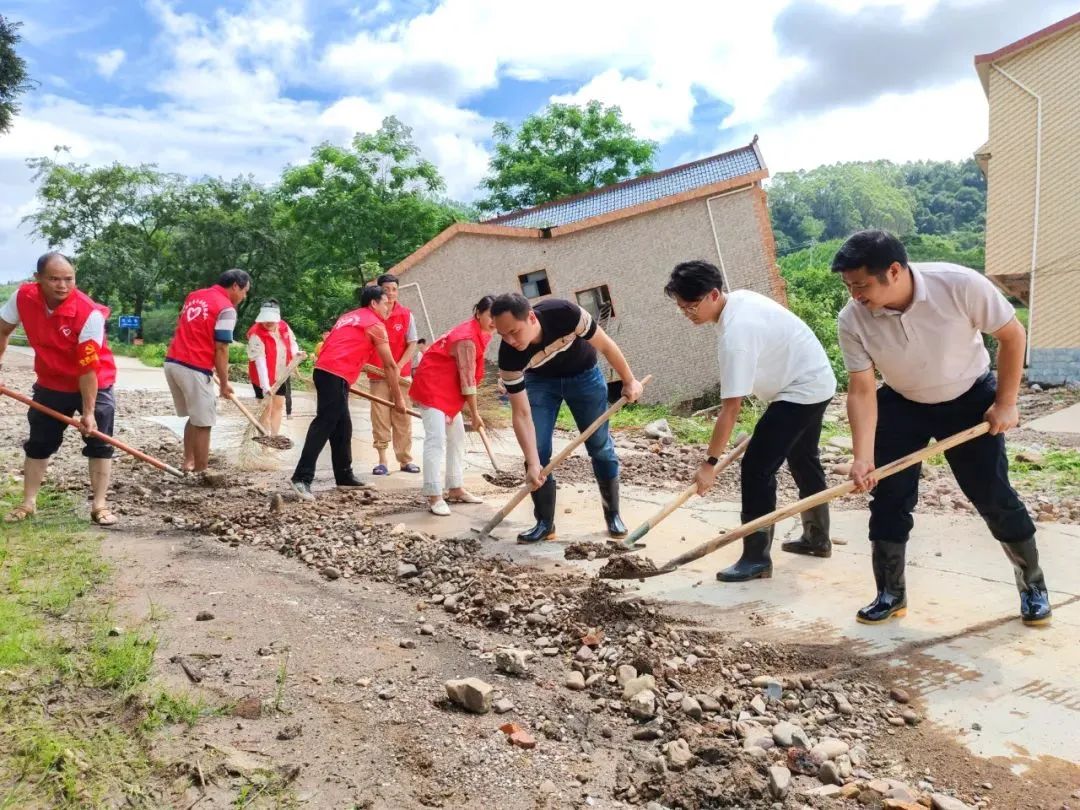 罗锦镇青年志愿者在受灾最为严重的林村村近山屯开展道路清障和清淤工作