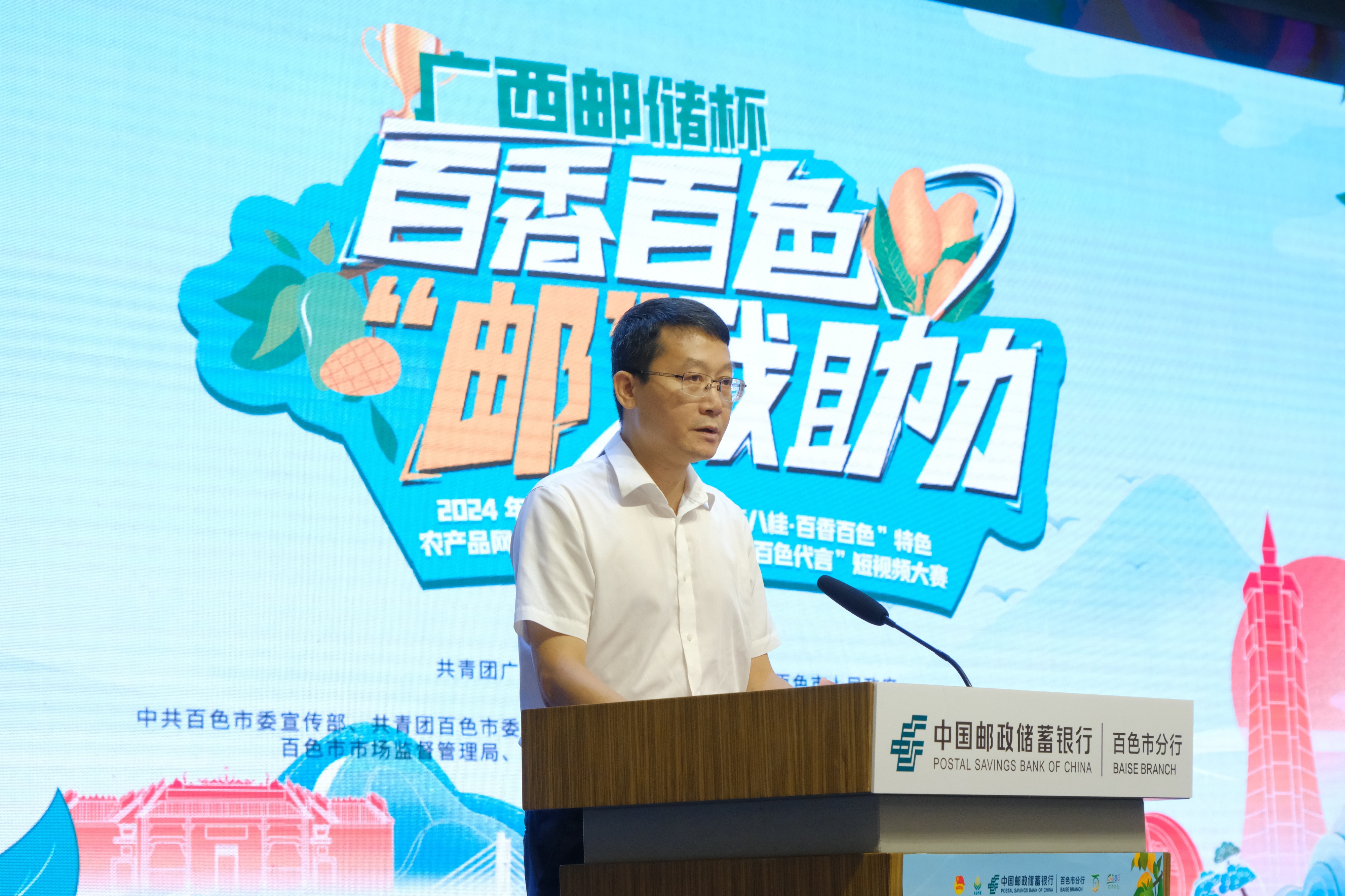 7月10日,由共青团广西区委、中共百色市委员会、百色市人民政府主办,中共百色市委宣传部、共青团百色市委员会、百色市人力资源和社会保障局、百色市商务局、百色市农业农村局、百色市市场监督管理局、百色市文广体旅局、百色农林集团、百色城产集团承办,邮储银行广西分行冠名的“广西邮储杯”2024年青年(大学生)“青耘八桂·百香百色”特色农产品网络营销大赛暨“我为千姿百色代言”短视频大赛在壮乡红城广西百色正式开幕。大赛启动仪式上,百色市人民政府副市长古俊彦,邮政储蓄银行广西分行党委委员、副行长高山分别为大赛致辞,共青团广西区委副书记荣丽伟宣布大赛启动。