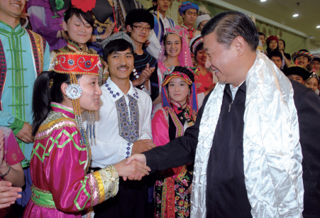 ※ 2009年5月6日,习近平在中央民族大学亲切接见56个民族的学生代表。