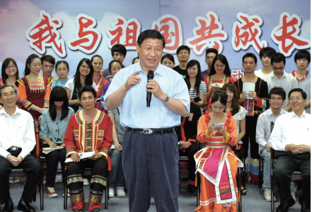 ※ 2010年5月10日,习近平在广西民族大学参加“我与祖国共成长”主题活动。