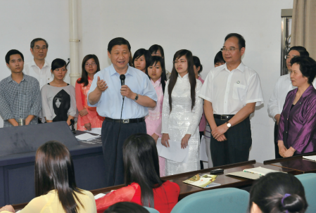 ※ 2010年5月10日,习近平在广西民族大学勉励留学生们做中外交流的友好使者。