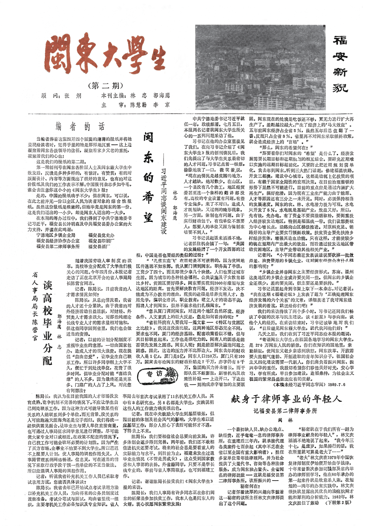 ※ 1989年8月,《闽东大学生》刊发《闽东的希望—习近平同志谈闽东建设》。