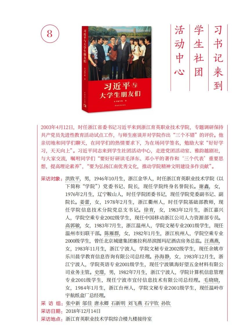 陈雁群:那天,我在图书馆一楼大厅等候习书记。见习书记等领导从楼梯上走下来,我迎了上去,手里捧着当时正在学习的《保持共产党员先进性教育读本》,希望习书记给我签个名。他轻声问道:“你是谁?”我自豪地回答:“我是一名今年即将毕业的学生党员,目前正在学习这个读本,请习书记给我提提要求。”