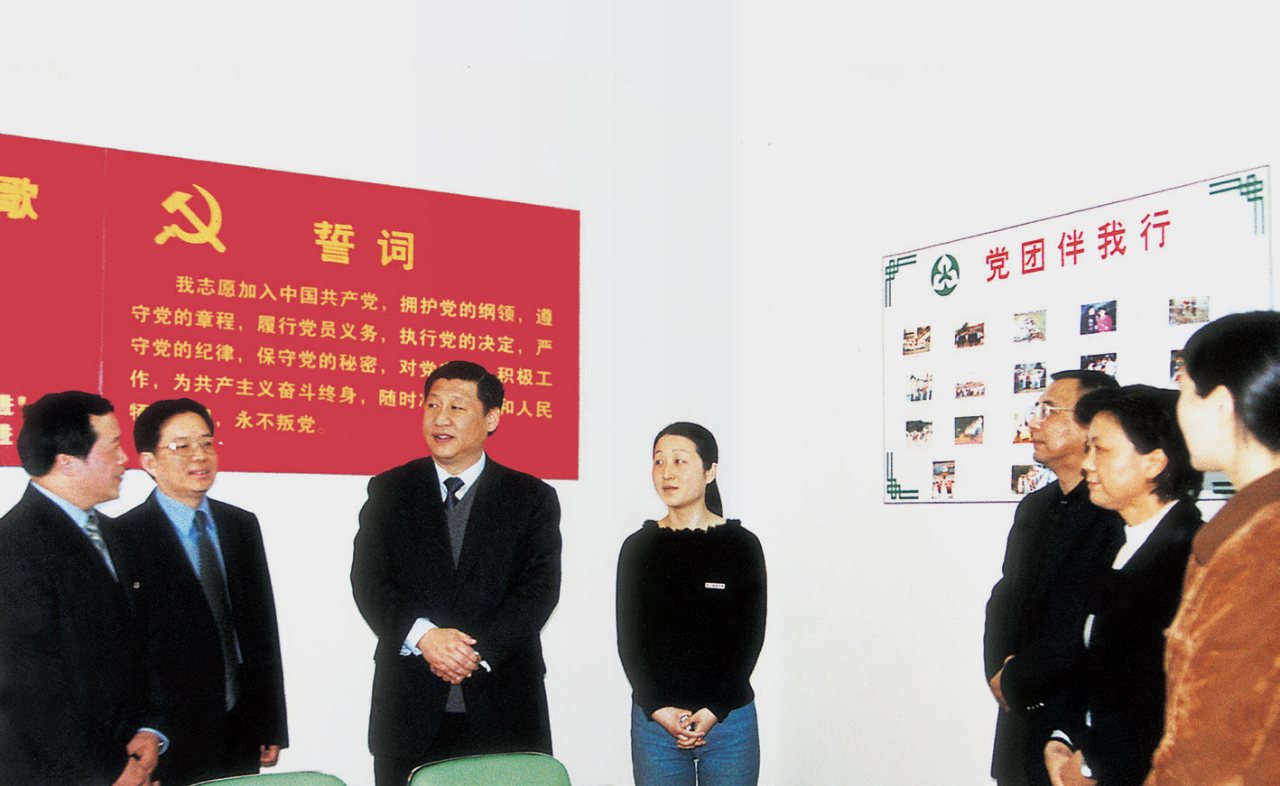 ※ 2003年4月12日,习近平视察浙江育英职业技术学院学生社团雅韵越剧社。