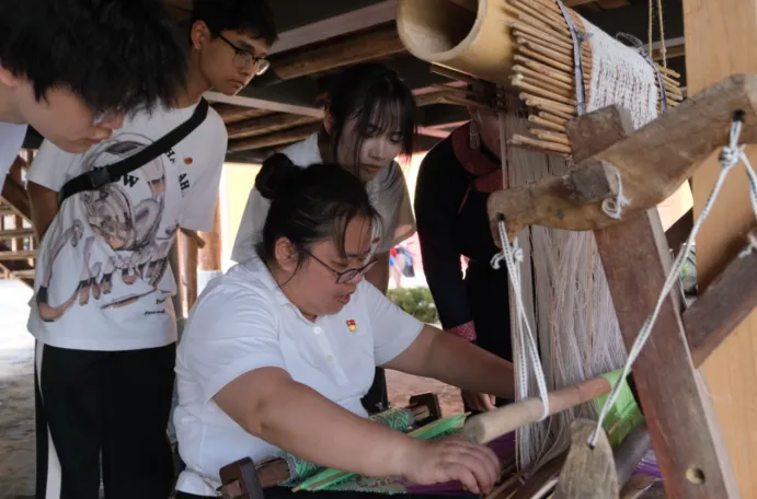 同日,实践团还赴天琴壮寨参观学习,跟着非遗传承人了解天琴与壮锦起源、制作技艺和艺术价值。