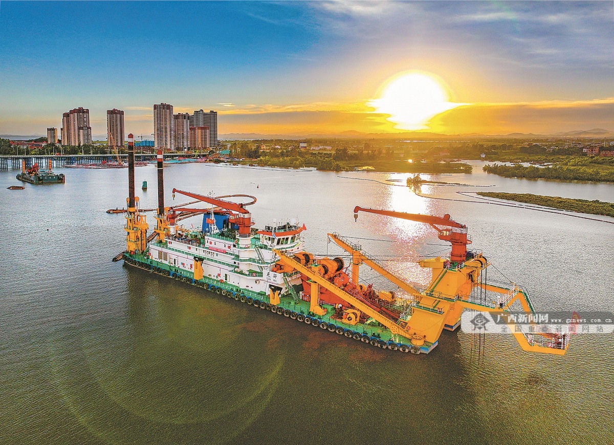 2024年7月20日,大型绞吸式挖泥船“天骅”船在青年枢纽下游河段进行河道疏浚。记者 周军 摄