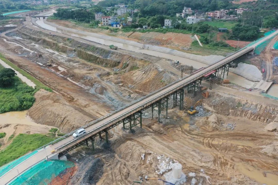 8月31日,万胜塘村保通桥顺利通车,标志着平陆运河全线16座保通桥全部建成通车。万胜塘村保通桥位于灵山县旧州镇,采用连续贝雷梁钢结构,建造耗钢量约782吨,桥长170米,承重限制49吨,该保通桥通车试运行后,将为旧州镇玉石坝村、燕子坝村等地群众日常出行提供便利。