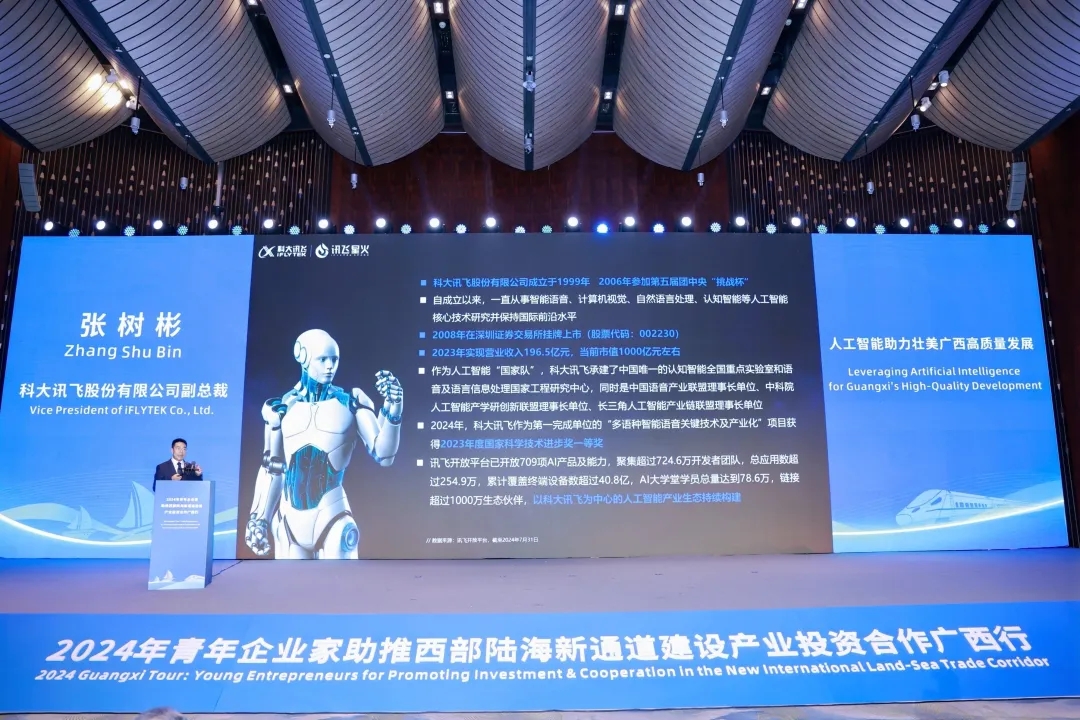 “欢迎国内外优秀开发者到广西创业发展,在新兴产业创新孵化、民生领域服务提升、传统行业升级转型等方面提质赋能。”张树彬向青年企业家们勾画出一幅“数字蓝图”:构建市级通用人工智能底座,打造地市特色大模型应用场景生态;推进大模型边疆民族地区教育的深度融合应用;强化大模型在工业全流程数字化转型、安全生产及工业质检领域的应用;强化大模型基于广西国际通信业务出入口局进行产业发展布局……