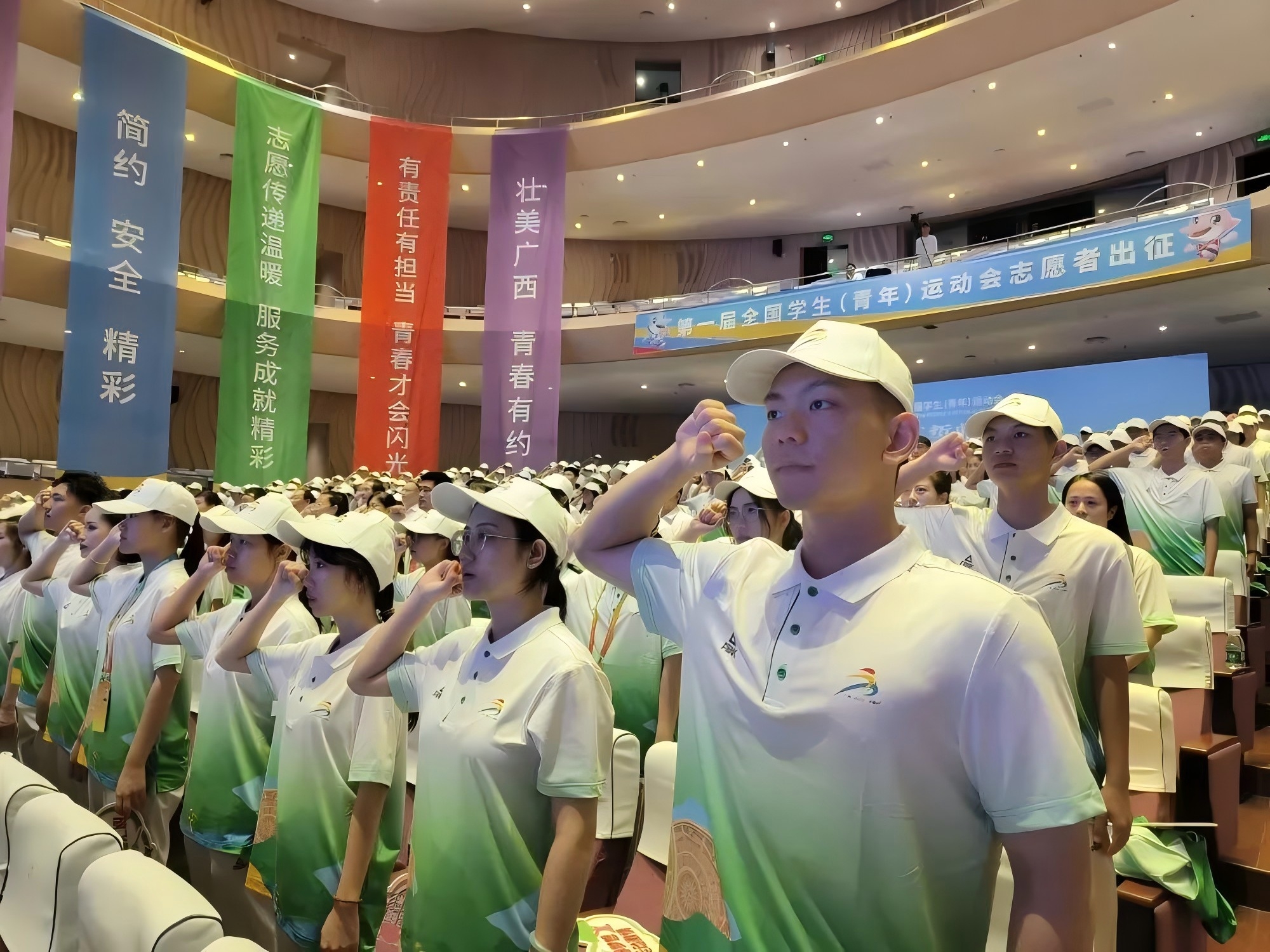 2023年,首届学青会志愿者“小青芒”在出征仪式上宣誓