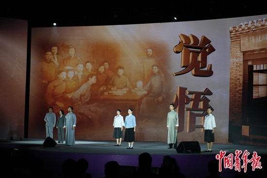9月21日晚,天津,在南开大学举行的“把青春华章写在祖国大地上”大思政课网络主题宣传和互动引导活动上,著名演员刘劲、特型演员黄薇、南开大学学生代表等以话剧形式演绎周恩来总理在南开中学时男扮女装演话剧、在南开大学时期成立觉悟社、新中国成立后三回南开等鲜为人知的故事。田嘉硕/摄