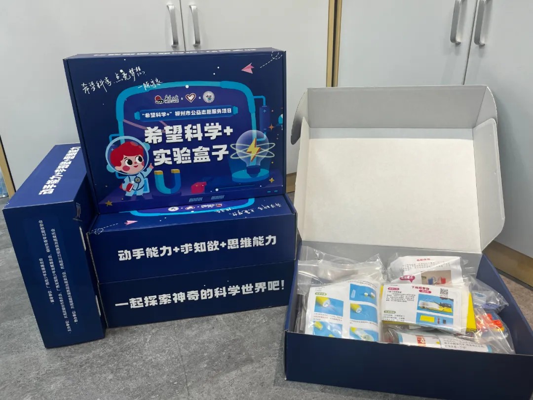 陈宇良为学生发放“希望科学+”专属设计的实验盒子