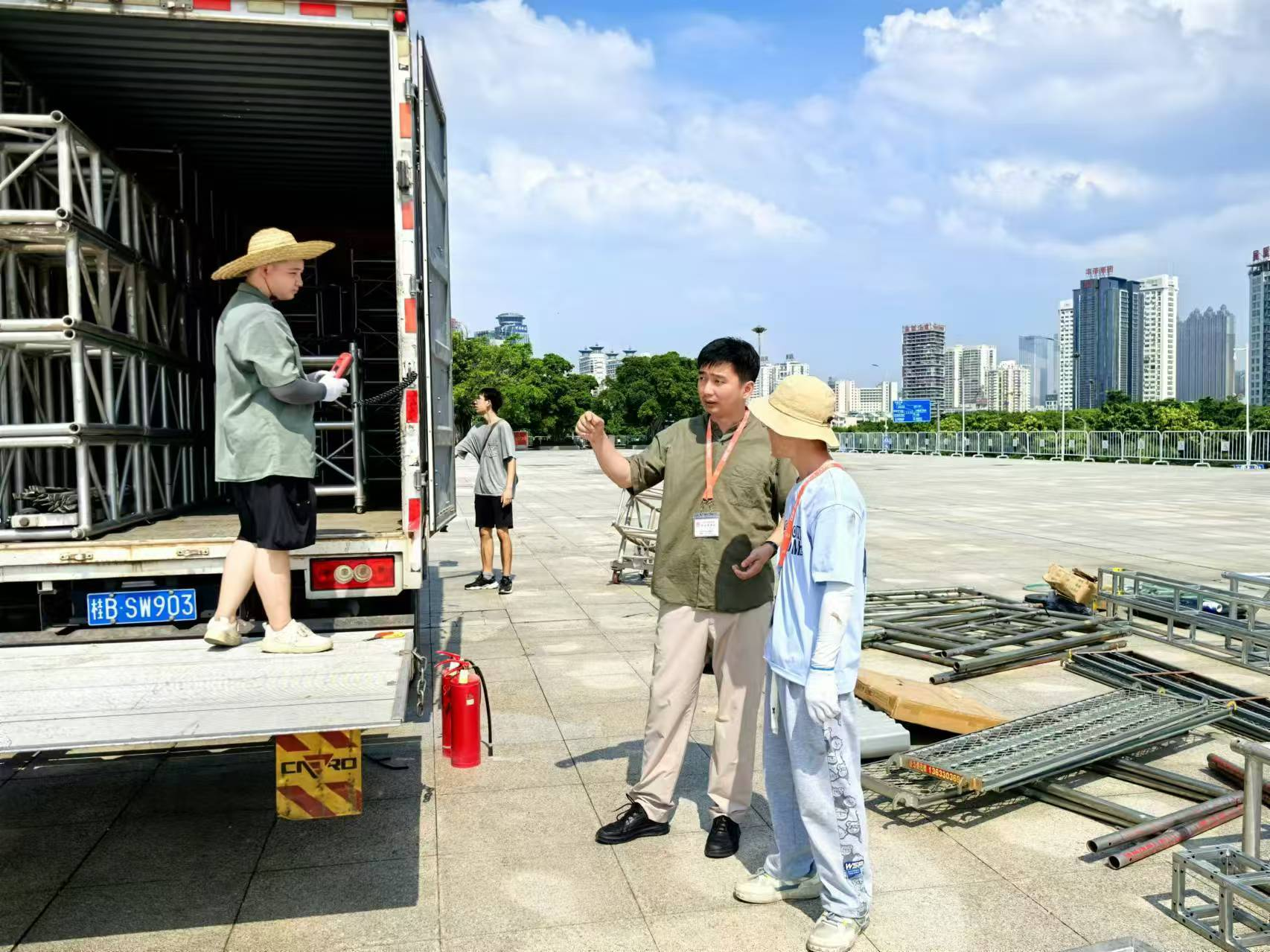 来自南宁市国家档案馆的李来霖刚刚硕士研究生毕业,这次主动请缨参加服务,主要负责广场每日巡检,展位24小时现场管理、接待、布置等工作,白皙的皮肤在这段时间被晒得黝黑,他说:“从校园到社会,第一次亲身参与到国家级盛会的筹备中,虽然任务繁重,但是在服务的过程中不仅极大地锻炼了我的沟通协调和应变能力,更让我体会到了服务的成就感。能够成为青年突击队的一员,与许多优秀的市直机关青年干部同行,在开拓眼界的同时也激励着我不断前行,很有收获。”