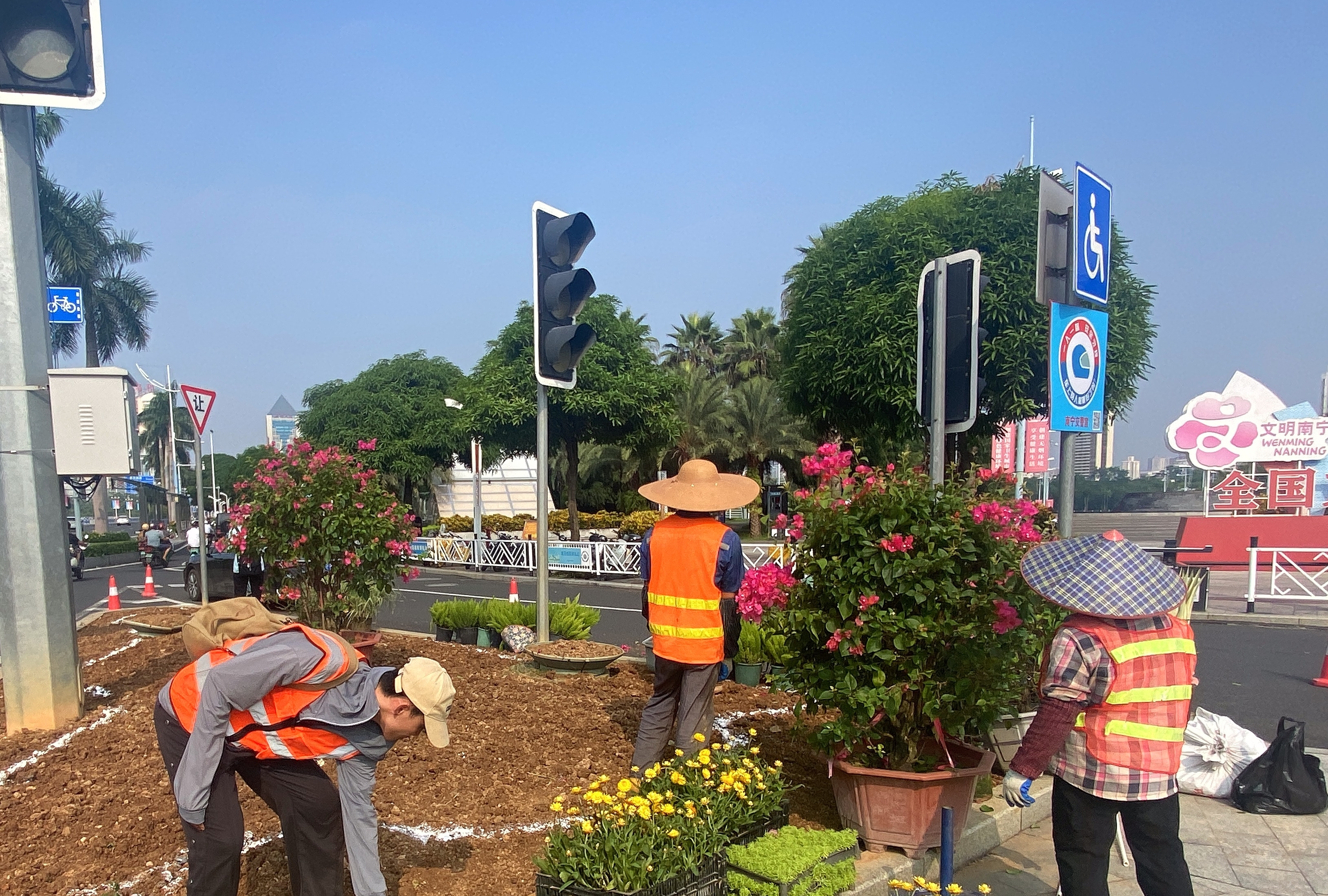 另外,南宁市委宣传部组建了一支由27名青年组成的服务“东博会和峰会”突击队,主要完成了协调市属新闻媒体宣传、海内外融媒体平台宣传,以及推进重要场所、精品线路、各类交通站点、市内标志性楼宇、市政设施等的社会氛围营造工作。南宁市市政园林局组建了两支共计69人的服务“东博会和峰会”突击队,主要完成了市区重点道路、广场、公园等的鲜花氛围营造工作。