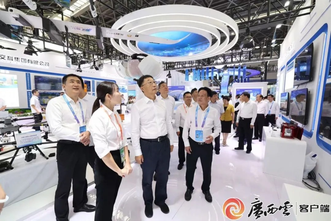 9月25日,自治区党委书记刘宁、自治区政协主席孙大伟等自治区四家班子领导来到南宁国际会展中心,巡视第21届中国—东盟博览会展馆,与参展客商亲切交流,并看望慰问东博会、峰会指挥中心工作部工作人员。