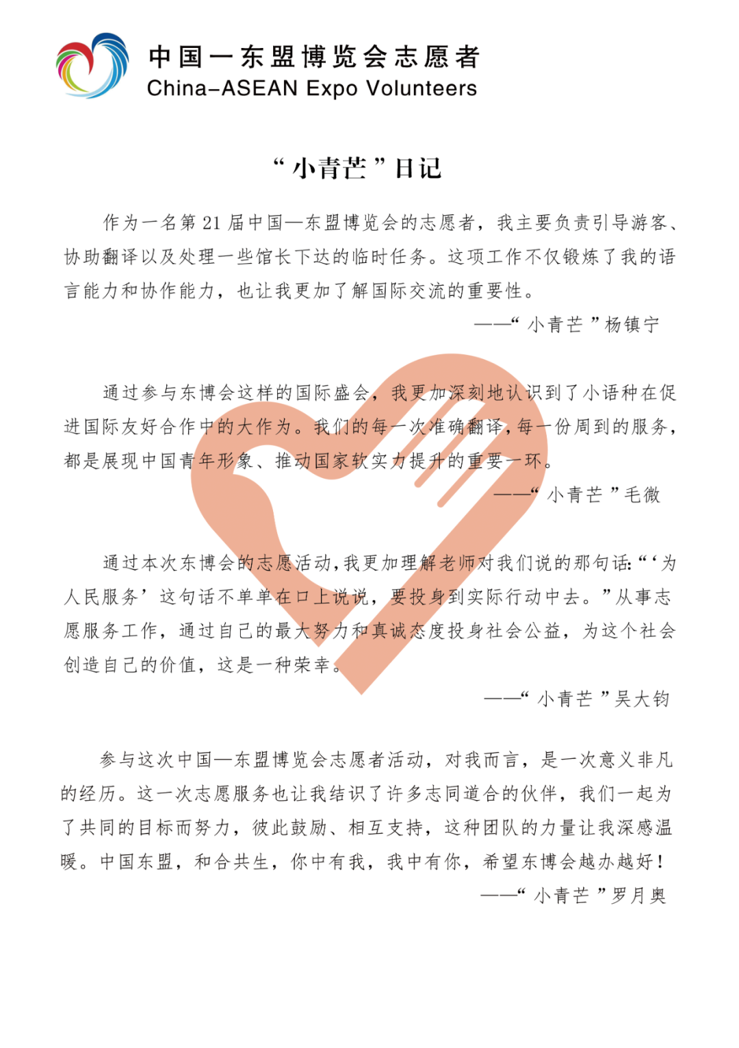 东博会志愿服务日记吧!