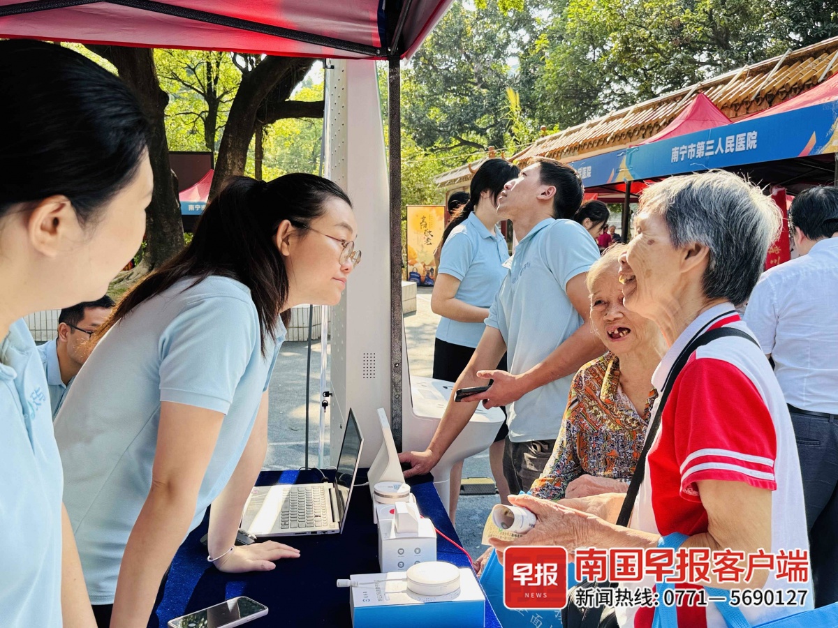 南国早报全媒体记者看到,现场除了展示辅具,不少养老机构还将智慧监测仪搬至现场,给老人做体检;各大医院的医务人员也来到现场,开展健康义诊活动。此外,公安、司法部门还在现场设立了咨询服务台,进行反诈宣传以及提供司法援助服务等。
