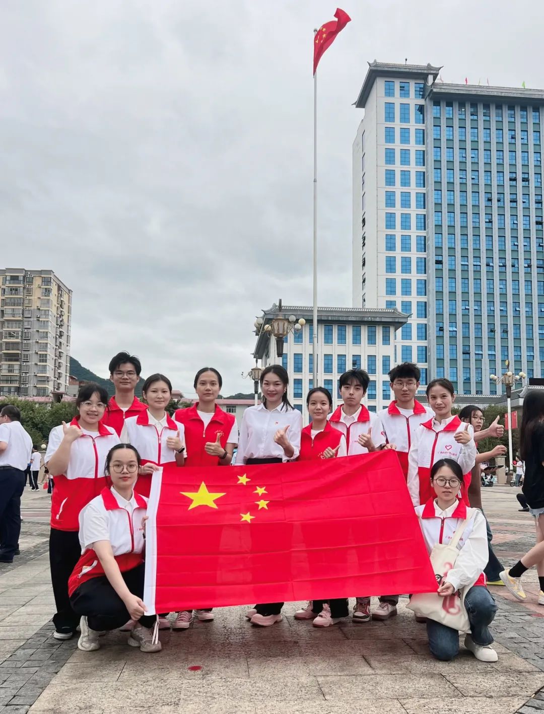 10月1日,我参加了田东县庆祝中华人民共和国成立75周年升旗仪式活动。站在鲜红庄严的国旗下,我的自豪感油然而生。作为一名西部计划志愿者,我更加坚定了“我将无我,为祖国和人民奋斗”的决心。