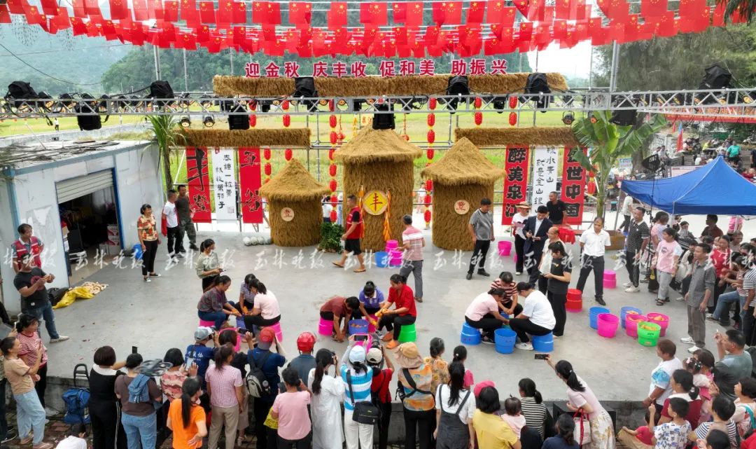 10月19日,在玉林市兴业县葵阳镇泉江村,一场村民自发组织的丰收节庆祝活动,吸引了众多游客体验农耕文化的魅力,打卡田园靓丽秋景。