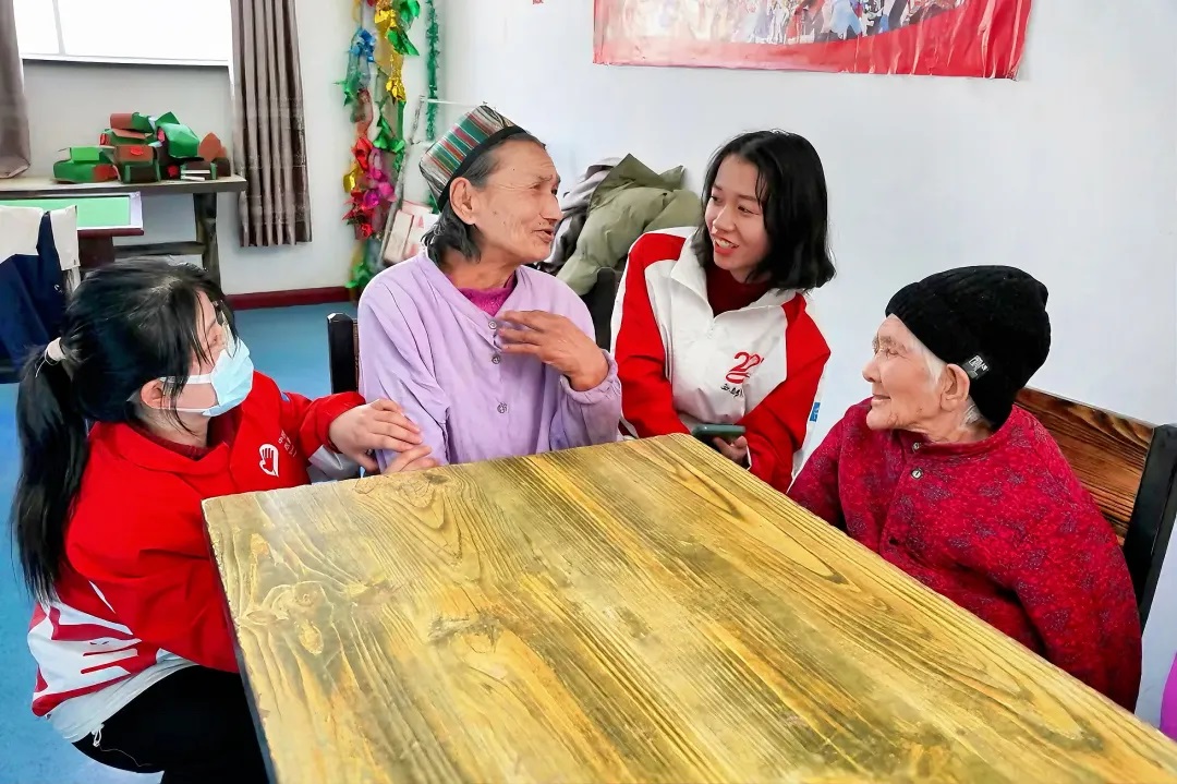 新疆维吾尔自治区喀什地区叶城县西部计划志愿者开展为老志愿服务,与少数民族群众交流
