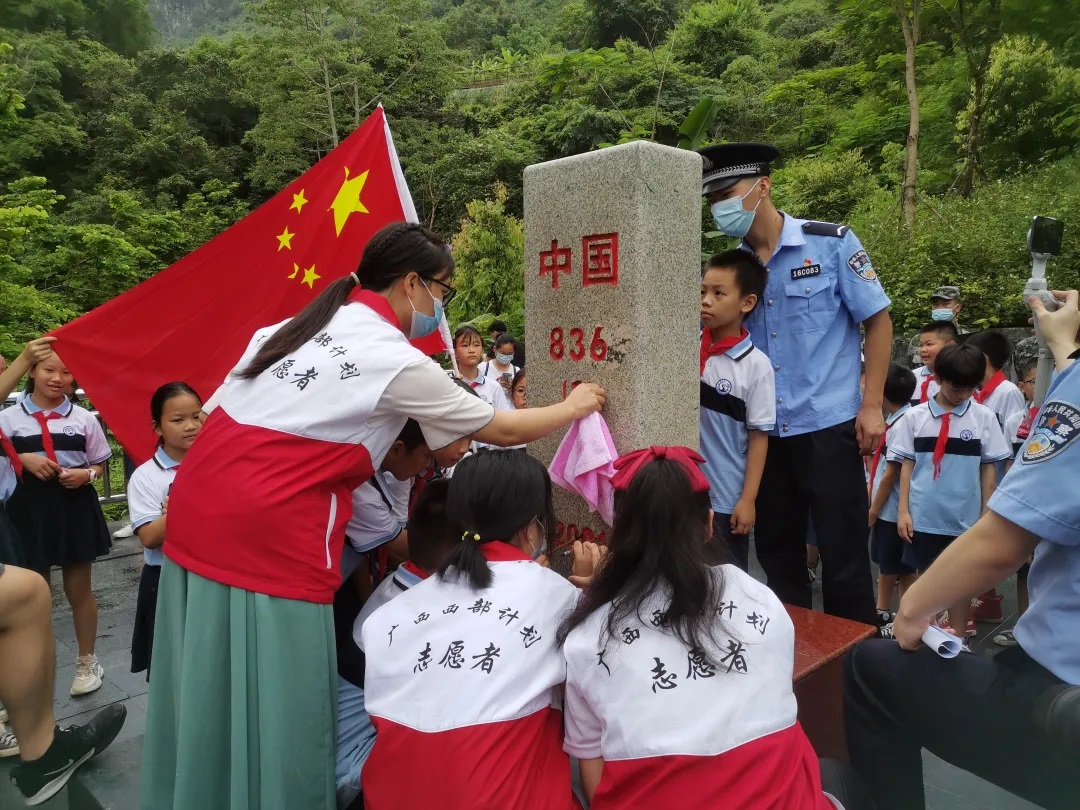 广西壮族自治区崇左市大新县西部计划志愿者为界碑描红