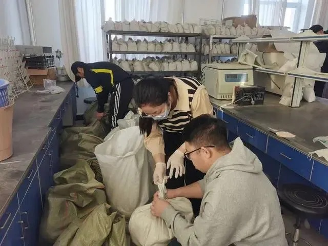 内蒙古自治区巴林右旗西部计划志愿者将采集的土样进行分类