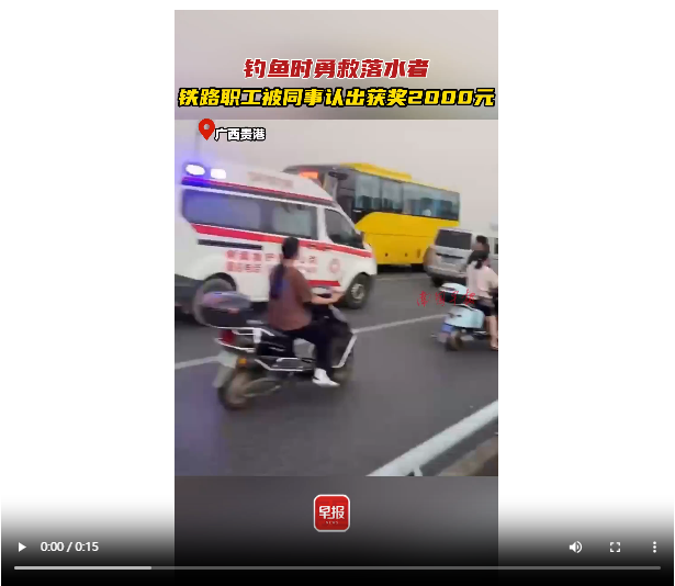 被同事认出来后,吴剑笑着说:“有人落水,当然是救人要紧,人没事就好。”因见义勇为,吴剑获得单位奖励2000元。