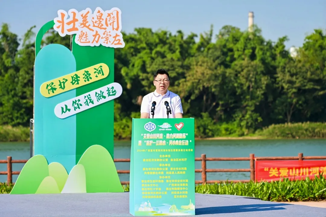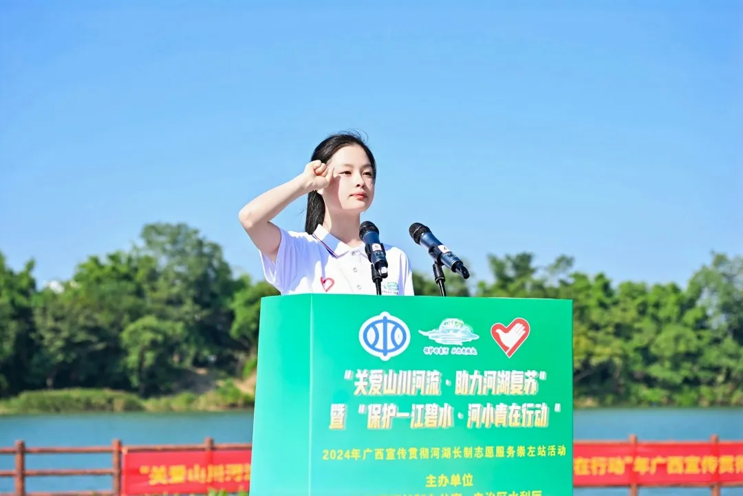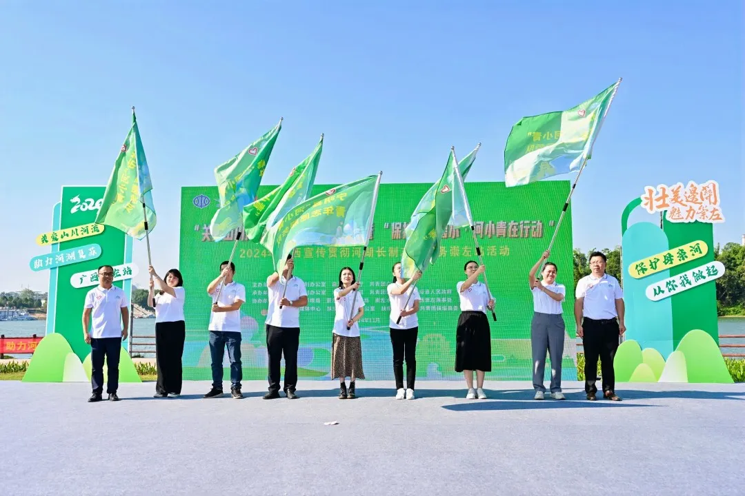 启动仪式上,崇左市河长办就崇左市宣传贯彻河长制及“河小青”志愿服务工作作经验交流,崇左市企业河长代表分享其参与河湖保护的实践经历和感受,号召社会各界人士积极参与护河、巡河、清河活动。出席活动的领导嘉宾为崇左市企业河长代表颁发证书,并为“河小青”青年志愿服务队授旗。随后,“河小青”青年志愿者集体宣誓,用铿锵有力的誓言表达守护母亲河、保护水环境的坚定信念。