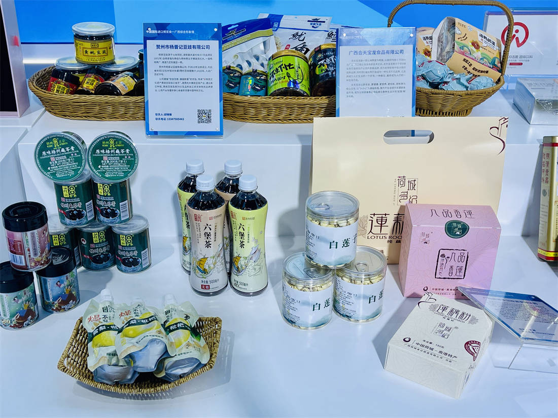 ▲双钱龟苓膏、杨晋记豆豉等“老字号”亮相进博会。广西商务厅供图