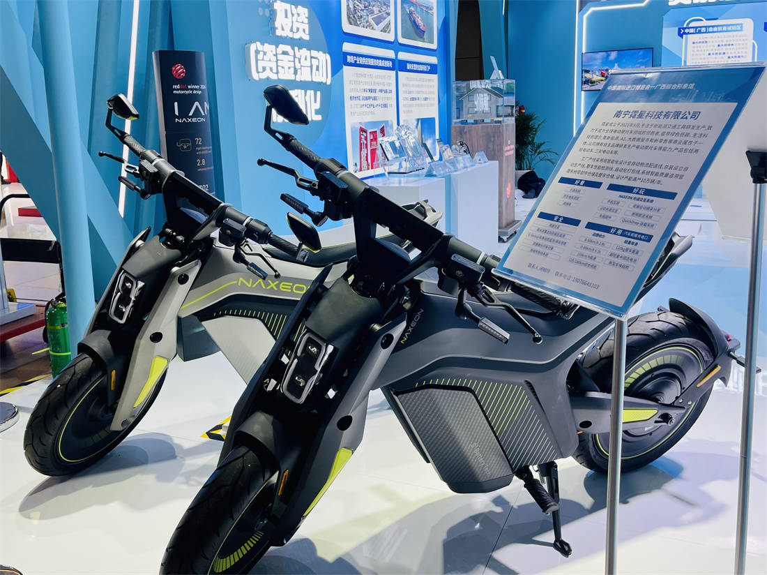 在投资(资金流动)便利化展区内,炫酷的电动摩托车成为了展区的焦点。南宁市兴宁区重点招商引资企业南宁霓星科技有限公司相关负责人介绍,目前,公司的自主品牌“霓星NAXEON”已全面布局海外市场。今年在广西交易团的组织下,公司首次参展进博会,希望借助进博会的平台,寻找到更多新的合作伙伴。