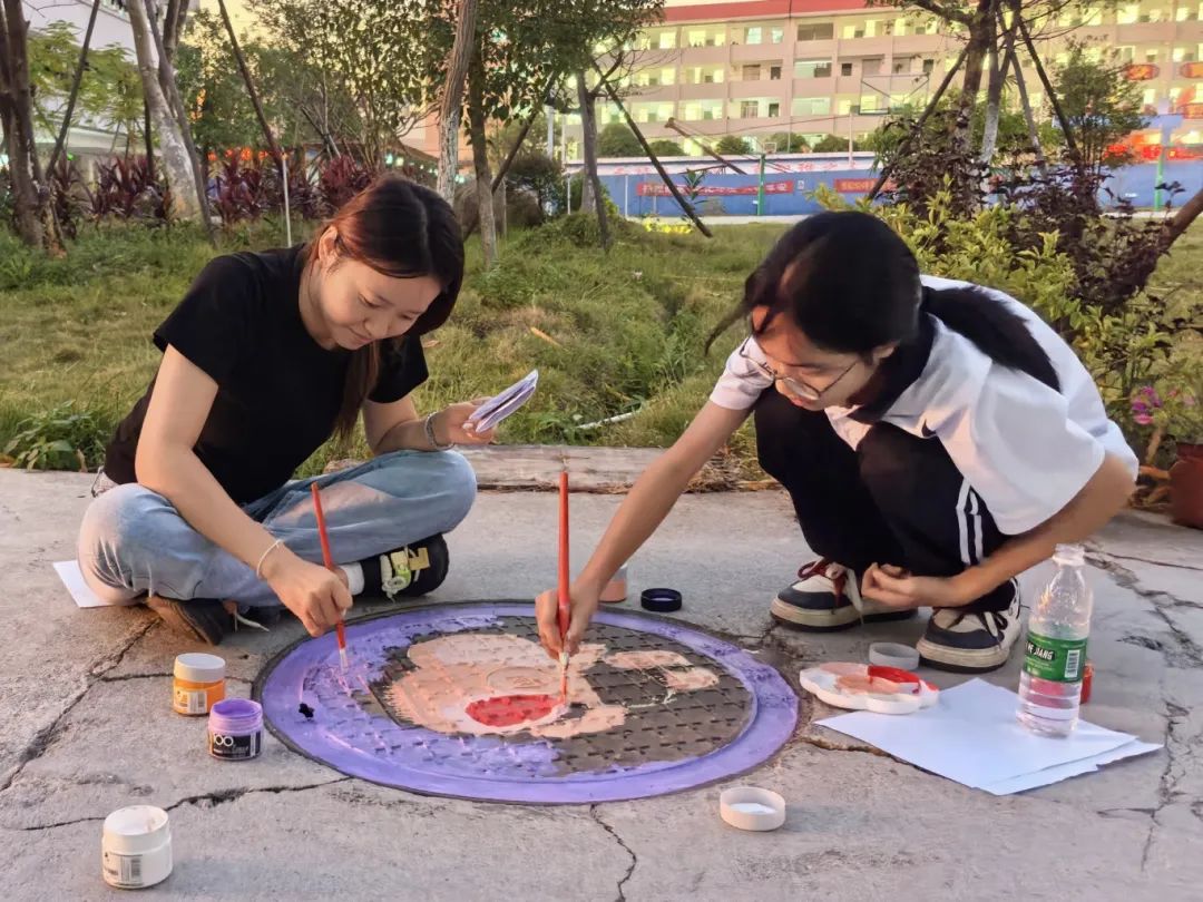 在秀美的灵山,有一所被阳光温柔拥抱的学校,那里不仅有朗朗读书声,还有怀揣梦想与热情的老师,其中包括我,一名西部计划志愿者。灵城第四中学美术社团发起一项创意活动,旨在用色彩和想象力为平凡的校园生活添上一抹亮色。而我,与一群热爱艺术的孩子们一起并肩作战,共同绘制属于我们的“彩色记忆”。不起眼的井盖变成了我们的画布,在孩子们的笔下焕发新生。